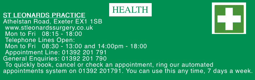 | Chairman | Nigel FitzHugh | stleonardsnassoc@gmail.com | 01392 274667 |