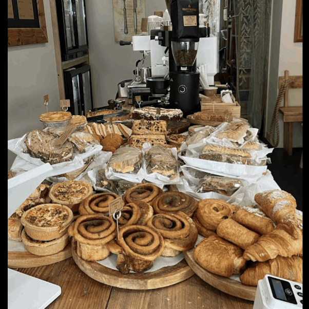"Specialty coffee, tea, hot chocolate and chai; pastries, bagels & Exploding bakery cakes to enjoy for take away or in our courtyard behind the store. Please observe social distancing (abs wear a mask) in our one-way queuing system. Thank you for your support. A hug xxx"